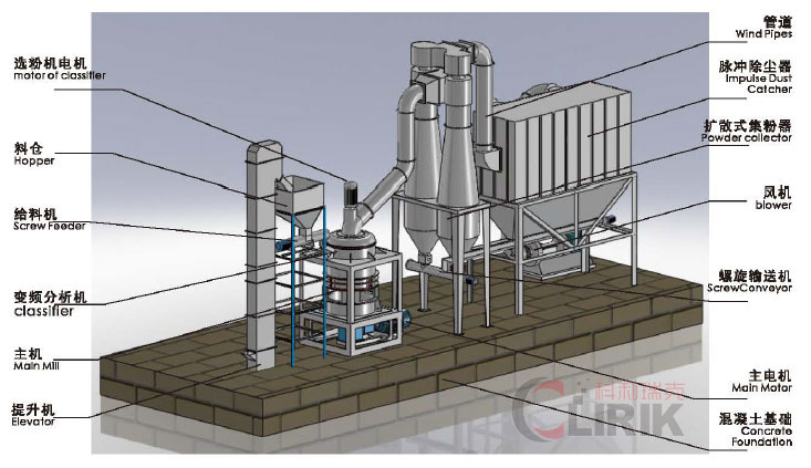 科利瑞克超細磨粉機是一整條從破碎、粉磨、選粉到出料的磨粉生產線,HGM系列超細磨粉機生產線配備的設備都有哪些呢?